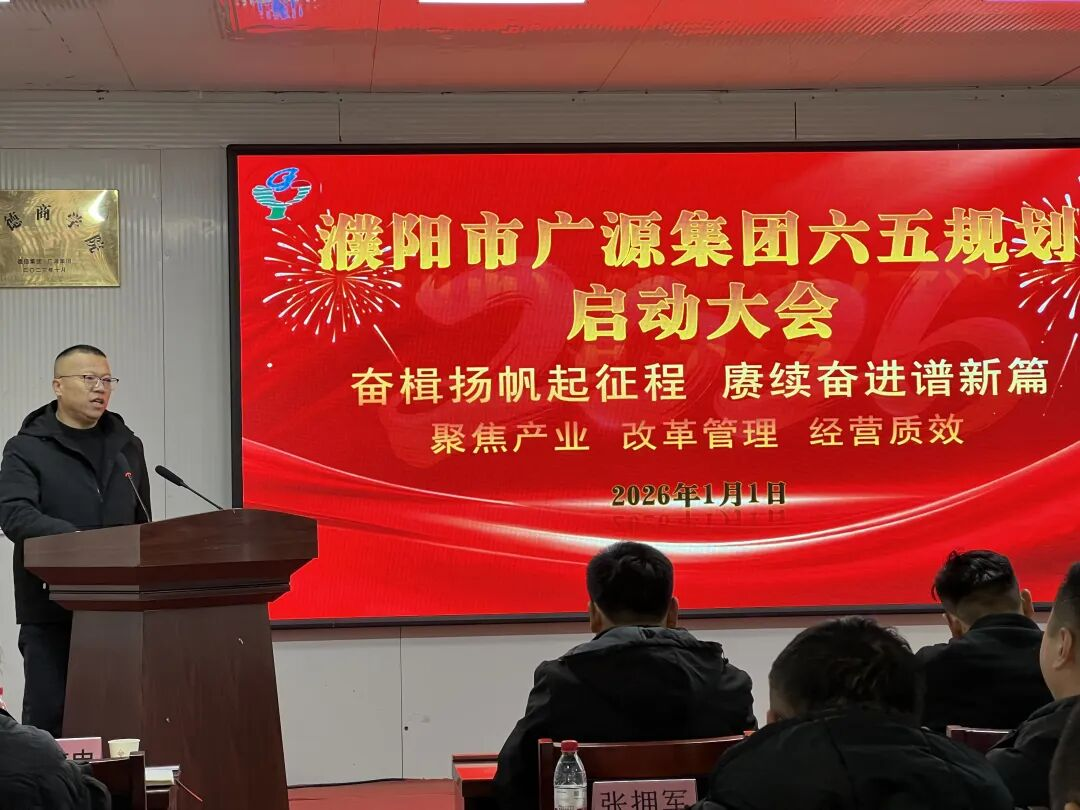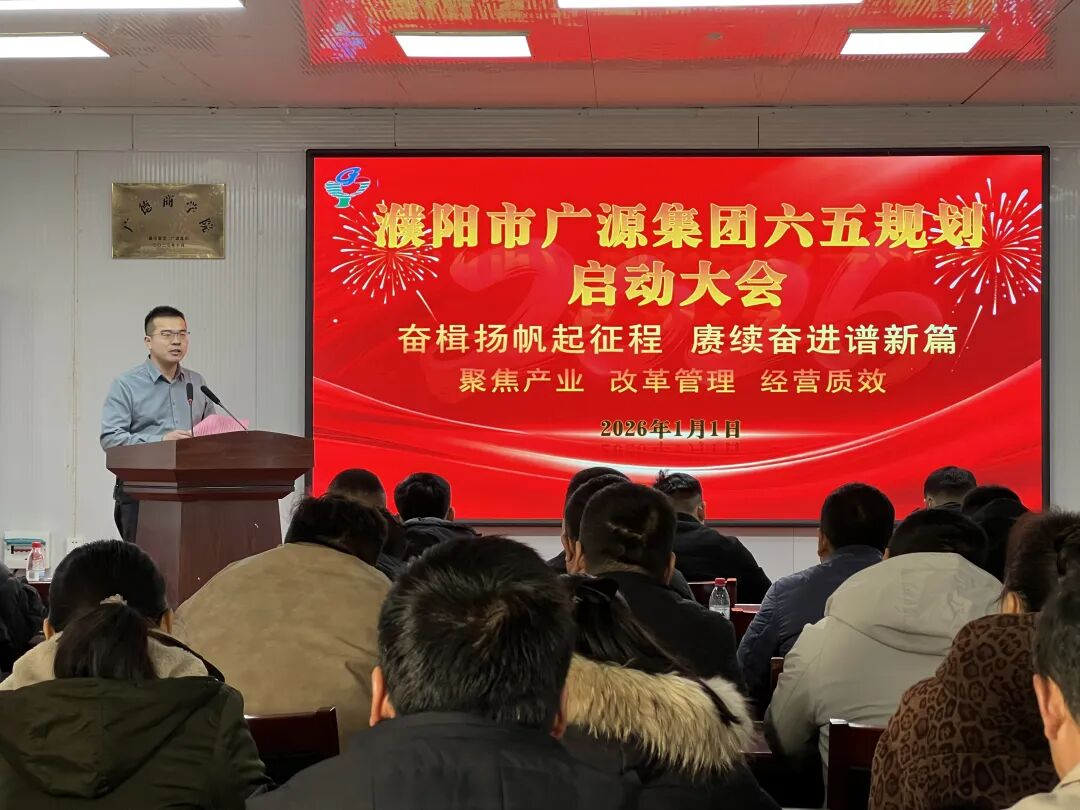 2026年1月1日上午9时,广源集团第六个五年规划启动会在集团办公楼四楼会议室隆重召开。会议以“聚焦产业、改革管理、提升经营质效”为核心主题,集团全体人员出席,共同见证了这一战略征程的开启。