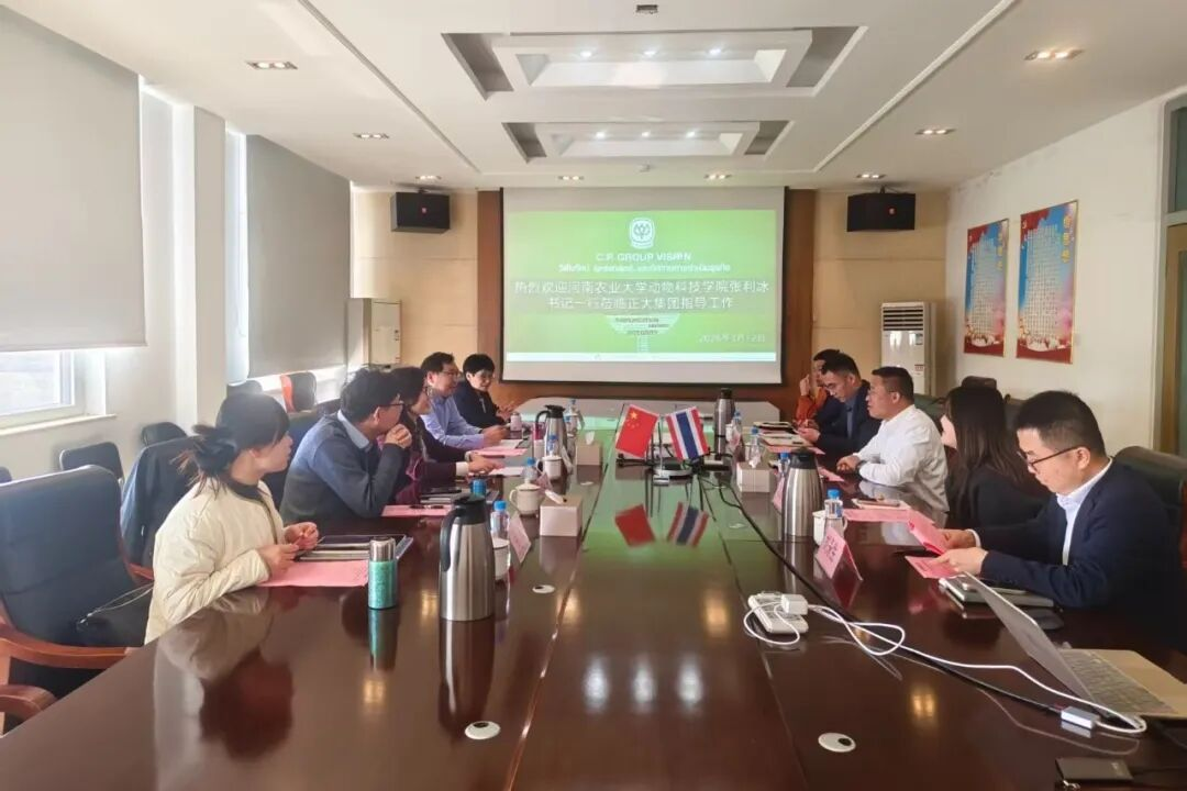 春潮涌动,合作共赢。日前,河南农业大学动物科技学院张利冰书记、田亚东院长、付彤副院长等一行5人莅临正大集团河南区开展访企拓岗暨校企合作交流活动。正大集团河南区饲料事业副总裁王停战、正大集团饲料王项目经理翁楚枫女士、南阳正大有限公司总经理王向峰、南阳正大农牧有限公司总经理卢权威等相关工作人员全程陪同接待。
