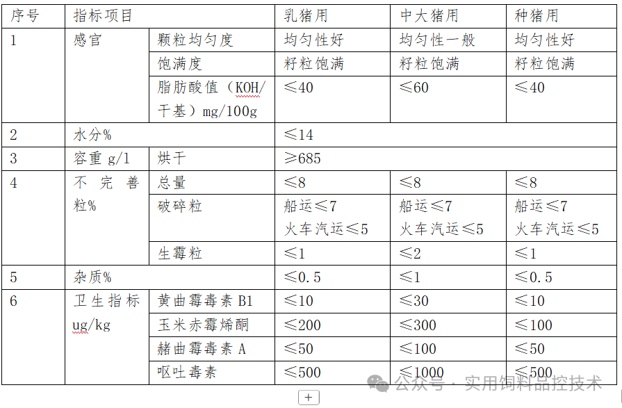 )是由中国粮食商业协会提出并归口,是在以上两个标准的基础上进行了修订和升级。该标准将玉米分为乳猪用、中大猪用、种猪用三个类别,并且增加了颗粒均匀度、饱满度