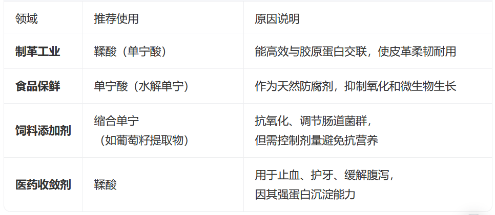 水解单宁(如单宁酸)收敛性强,可用于控制细菌性腹泻,但需控制剂量,避免毒性。