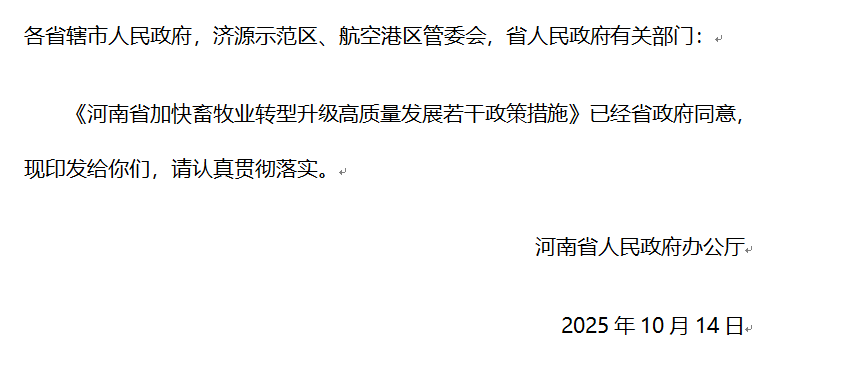 河南省加快畜牧业转型升级高质量发展若干政策措施