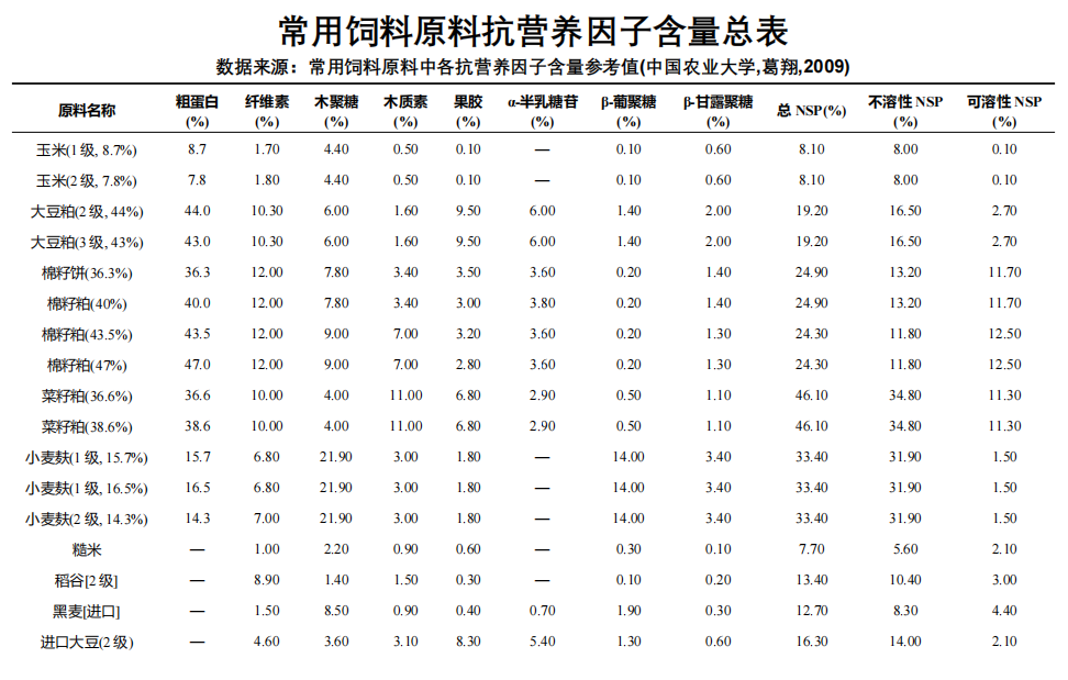 资料来源于中国农业大学葛翔博士关于饲料原料的研究!