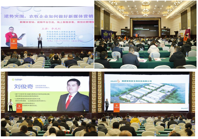 年会上,四川农业大学教授陈代文、河南牧邦实业有限公司董事长刘全星、河南正本清源科技发展股份有限公司技术顾问施传信,诸城市浩天药业有限公司总经理陈科材、比利时浩卫制药股份有限公司产品经理荆新堂、保安康生物创始人王云龙、河南农科牧业有限公司总经理李凤利、中农颖泰林州生物科园有限公司博士刘扬科、河南新逻辑营养生物技术有限公司董事长刘俊奇、福建旭牧联生物科技有限公司博士陈勇、旭百瑞创新发展研究院首席科学家陈文斌分别就《我国生猪营养技术瓶颈及潜力》《三只眼睛看农牧》《基于中央厨房生产系统的活性发酵教槽料研究与应用》《新型蛋白-100%水溶蛋白亿鸿肽》《家禽肠道健康解决方案》《保安康企业固体发酵工艺与产品特色》《逆势突围,农牧企业如何做好新媒体营销》《国家新饲添抗菌肽&NCG研究进展》《重构农牧业高质量发展商业模式》《固体甲酸产品开发及在饲料中的应用效果评价》《以技术融合为主体的中小型饲料企业发展思路探讨》为题的主旨报告。