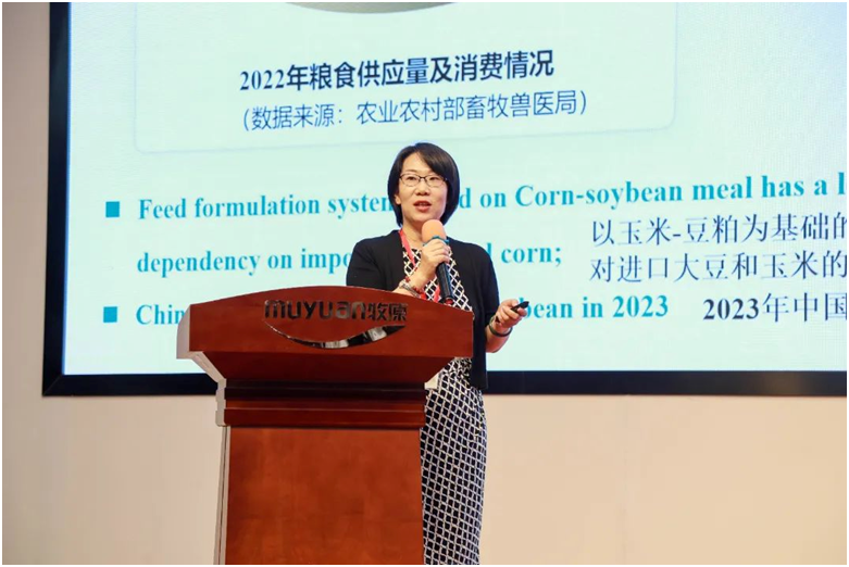 大会围绕低豆日粮应用、产业洞察、新质生产力、食品安全四个方面,来自牧原股份、温氏股份、新希望六和股份、双胞胎集团、扬翔股份、中粮期货、国家粮油信息中心、中国农业科学院、西湖大学等15家企业、科研院所、高校作专题报告。